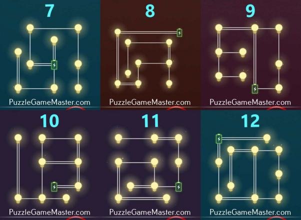 - Turn on all bulbs by connecting with energy source to solve each puzzle.