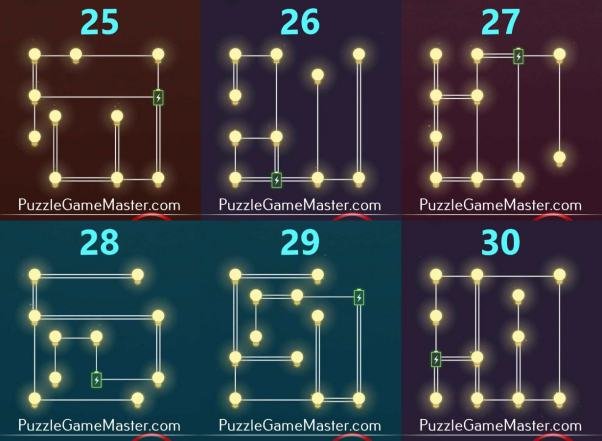 - Turn on all bulbs by connecting with energy source to solve each puzzle.