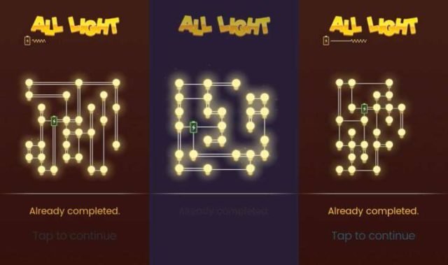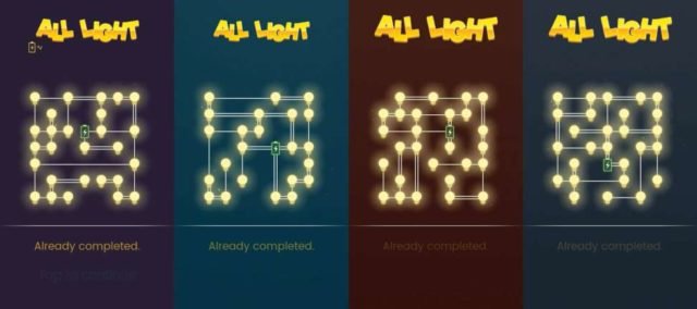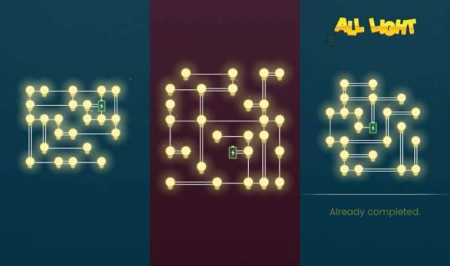 All Light – a puzzle game developed by Soulgit Games. Available for Android devices on Google PlayStore. ALL LIGHT is a wire connection puzzle game that contains 420+ puzzles with increasing difficulty packed in 7 packs A B C D E F G H and I, Each pack consists of 60 puzzles. If you love puzzle games, then you must play this game. In this game you have to connect battery to various lamps but you have to keep in mind that you cannot connect more or fewer wires and all bulbs should be connected. This puzzle game has amazing graphics with soothing sound effects. You can take a hint in 5 coins and you can purchase ad free version. Here I have solved all the puzzles to help you if you are stuck at any pack or any level. Scroll Below to find Solutions.