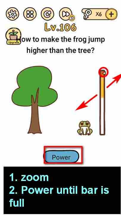 Brain Boom level 106: how to make the frog jumo higher than the tree?