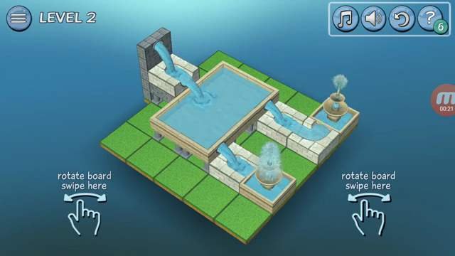 Flow Water Fountain is a puzzle game In which you can Create water jets, water cascades, move the different blocks and stones, channels and pipes through the 3D board and get the water of each color to flow and find the way to your destination fountain.