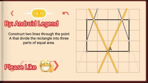 - Pythagorea Level 18.10: Construct two lines through the point A that divide the rectangle into three parts of equal area.