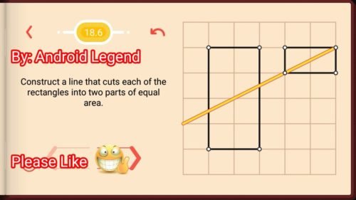 - Pythagorea Level 18.6: Construct a line that cuts each of the rectangles into two parts of equal area.