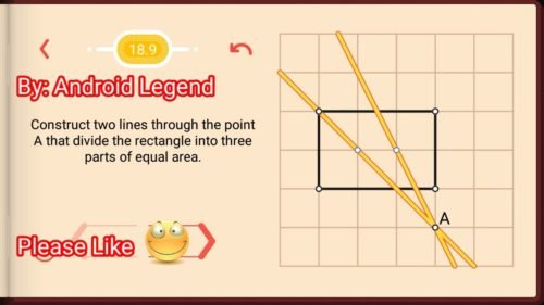 - Pythagorea Level 18.9: Construct two lines through the point A that divide the rectangle into three parts of equal area.