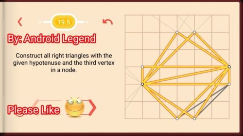 Pythagorea Right Triangles Level 19.5 Answers, detailed solutions, Tips, and Walkthrough. Scroll below to find the answer to this level. Pythagorea is an android/iOS app developed by Horis International Limited. Solutions hints and answers to pythagorea are available in this post scroll down to find solutions to all the levels.