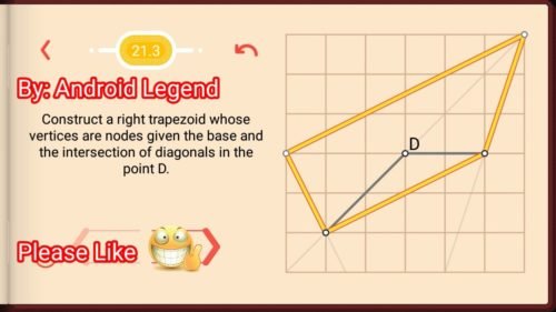 - Pythagorea Level 21.3: Construct a right trapezoid whose vertices are nodes given the base and the intersection of diagonals in the point D.