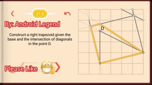 - Pythagorea Level 21.8: Construct a right trapezoid given the base and the intersection of diagonals in the point D.