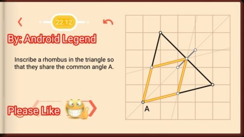 - Pythagorea Level 22.12: Inscribe a rhombus in the triangle so that they share the common angle A.