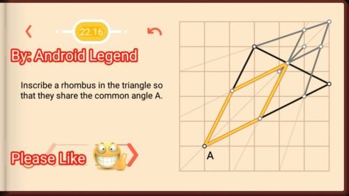 - Pythagorea Level 22.16: Inscribe a rhombus in the triangle so that they share the common angle A.