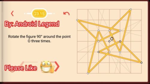- Pythagorea Level 23.15: Rotate the figure 90° around the point O three times.