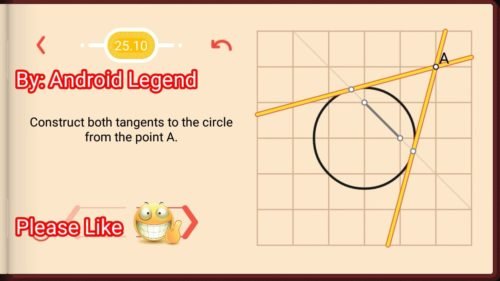 - Pythagorea Level 25.10: Construct both tangents to the circle from the point A.