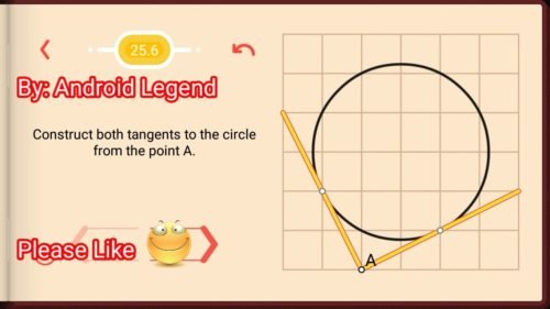 - Pythagorea Level 25.6: Construct both tangents to the circle from the point A.