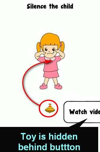 Move the ‘watch video’ button, there is a toy hidden under that button; give it to the child.