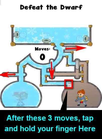 Hint: After 3 moves as shown in the below image, you have to block the water flow to the prince by hold tap your finger as shown in the image below: