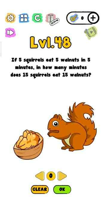 - Trick Me Level 48 If 5 squirrels eat 5 walnuts in 5 minutes