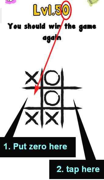 Drag ‘0’ from ‘level 50‘ and then use your finger to complete the middle row and win the game.