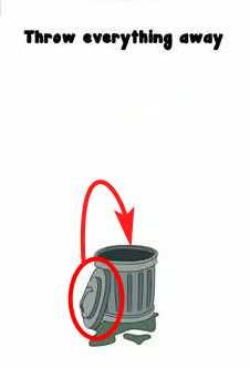 Throw 4 things+ throw question text in the bin+Throow the cap of the bin in the bin to solve this level.