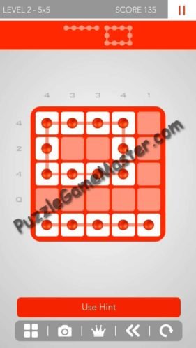 Logic Dots 2 Pack 5*5 Level 2 hints, answer solution walkthrough, the game is available for Android & iOS.