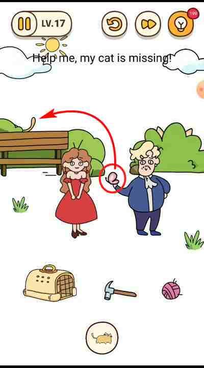 Help me, my cat is missing Brain find Level 17 Answer