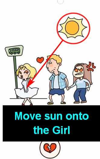 Answer: Drag the sun near the beautiful lady then the boy will se real face and his heart will be broken.