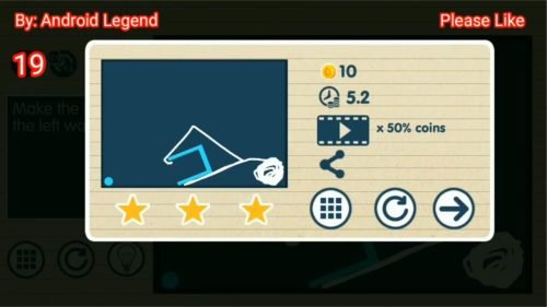 Brain on Line vs Physics Puzzle is an android/iOS game developed by JDI studios based on physics oriented puzzles. In this game, you have to draw lines that will interact as a physics object and you have to finish the task. There are plenty of puzzles ranging from very easy to very hard, Every puzzle you have to take 3 stars for a perfect solution. that will be decided by the time taken to complete the level and also the number of lines you drew for solving the level.