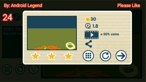 Brain on Line vs Physics Puzzle is an android/iOS game developed by JDI studios based on physics oriented puzzles. In this game, you have to draw lines that will interact as a physics object and you have to finish the task. There are plenty of puzzles ranging from very easy to very hard, Every puzzle you have to take 3 stars for a perfect solution. that will be decided by the time taken to complete the level and also the number of lines you drew for solving the level.
