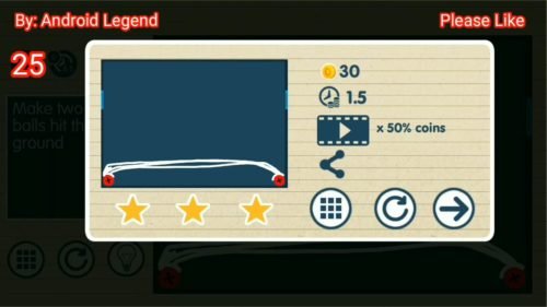 Brain on Line vs Physics Puzzle is an android/iOS game developed by JDI studios based on physics oriented puzzles. In this game, you have to draw lines that will interact as a physics object and you have to finish the task. There are plenty of puzzles ranging from very easy to very hard, Every puzzle you have to take 3 stars for a perfect solution. that will be decided by the time taken to complete the level and also the number of lines you drew for solving the level.