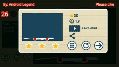Brain on Line vs Physics Puzzle is an android/iOS game developed by JDI studios based on physics oriented puzzles. In this game, you have to draw lines that will interact as a physics object and you have to finish the task. There are plenty of puzzles ranging from very easy to very hard, Every puzzle you have to take 3 stars for a perfect solution. that will be decided by the time taken to complete the level and also the number of lines you drew for solving the level.