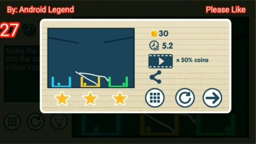 Brain on Line vs Physics Puzzle is an android/iOS game developed by JDI studios based on physics oriented puzzles. In this game, you have to draw lines that will interact as a physics object and you have to finish the task. There are plenty of puzzles ranging from very easy to very hard, Every puzzle you have to take 3 stars for a perfect solution. that will be decided by the time taken to complete the level and also the number of lines you drew for solving the level.