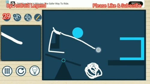 Brain on Line vs Physics Puzzle is an android/iOS game developed by JDI studios based on physics oriented puzzles. In this game, you have to draw lines that will interact as a physics object and you have to finish the task. There are plenty of puzzles ranging from very easy to very hard, Every puzzle you have to take 3 stars for a perfect solution. that will be decided by the time taken to complete the level and also the number of lines you drew for solving the level.