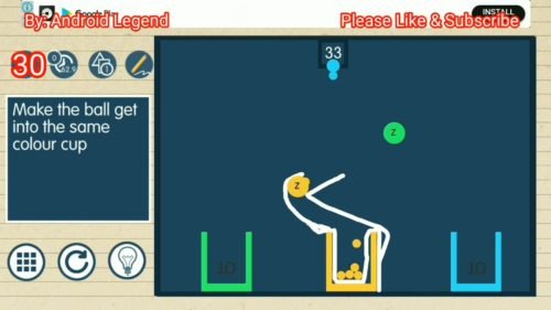 Brain on Line vs Physics Puzzle is an android/iOS game developed by JDI studios based on physics oriented puzzles. In this game, you have to draw lines that will interact as a physics object and you have to finish the task. There are plenty of puzzles ranging from very easy to very hard, Every puzzle you have to take 3 stars for a perfect solution. that will be decided by the time taken to complete the level and also the number of lines you drew for solving the level.