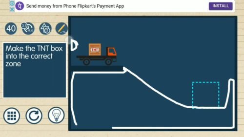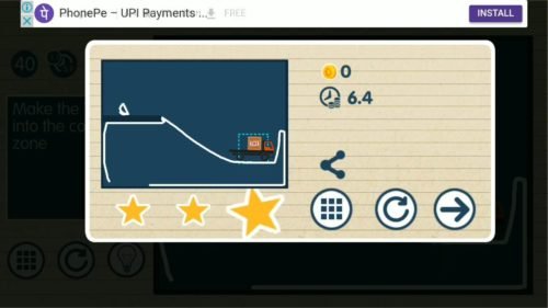 Brain on Line vs Physics Puzzle is an android/iOS game developed by JDI studios based on physics oriented puzzles. In this game, you have to draw lines that will interact as a physics object and you have to finish the task. There are plenty of puzzles ranging from very easy to very hard, Every puzzle you have to take 3 stars for a perfect solution. that will be decided by the time taken to complete the level and also the number of lines you drew for solving the level.