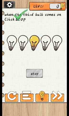 When the third bulb comes on, tap the word ‘stop’ in the question text