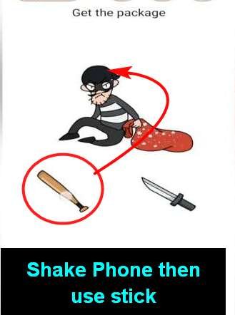 Answer: First shake the phone, then use the wooden stick to beat it and take the package.