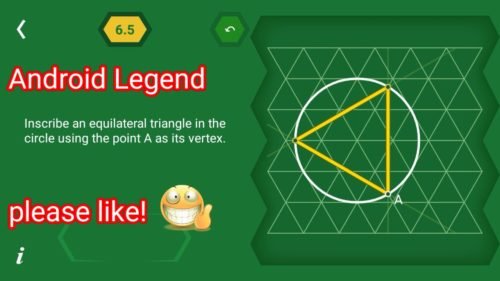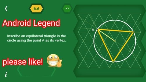 - Pythagorea 60° Level 6.5: Inscribe an equilateral triangle in the circle using the point A as its vertex.