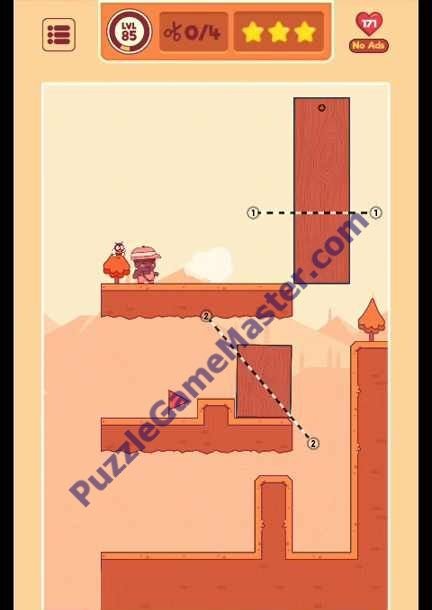 Cut to go game Level 85 86 87 88 are solved here. Here you will find hints associated with them Scroll below to find the answers. The game is developed by Super Game Studios.