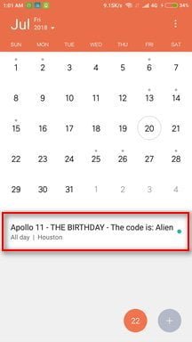 Go to the calendar app and this is what you will see on July 20, 2018: