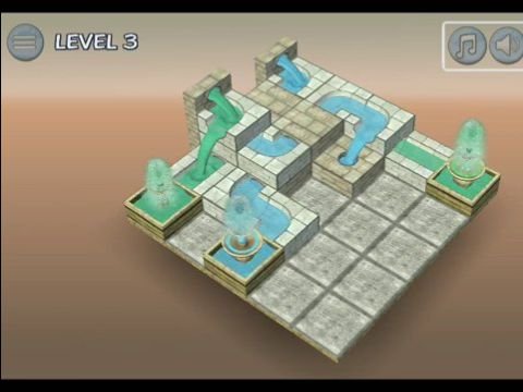 Flow Water Fountain is a puzzle game In which you can Create water jets, water cascades, move the different blocks and stones, channels and pipes through the 3D board and get the water of each color to flow and find the way to your destination fountain.