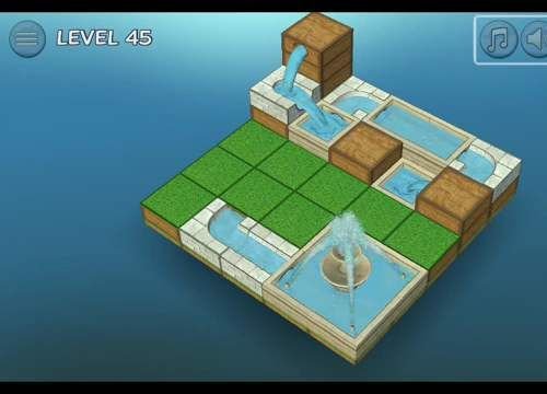 Flow Water Fountain is a puzzle game In which you can Create water jets, water cascades, move the different blocks and stones, channels and pipes through the 3D board and get the water of each color to flow and find the way to your destination fountain.
