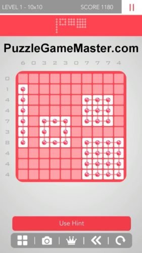 You can use hints if you got stuck and there are plenty of puzzles in packs 4×4, 5×5, 6×6, 7×7, 8×8, 9×9 and 10×10. each pack has 30 puzzles. Some packs are free to play but some need to watch a video or purchase the pack. I have solved each pack and every level of the pack, you have to go to the index of all levels which is given below.