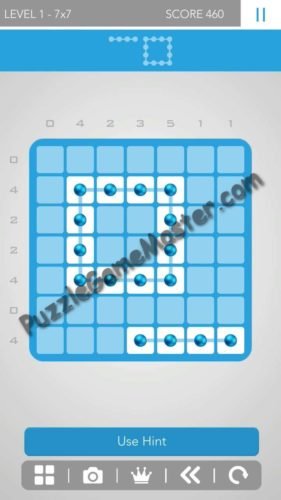 Logic Dots 2 7×7 Level 1 Hints and Answer