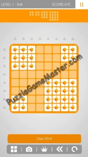 Logic Dots 2 Pack 8*8 Level 1 hints, answer solution walkthrough, the game is available for Android & iOS.