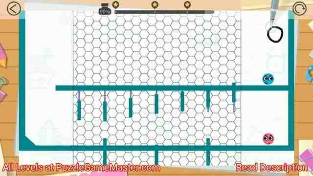 Line 1: Draw a shape to push the blue ball as shown in below image (this level is purely timing based, you have to time such that blue ball passes all the lines)