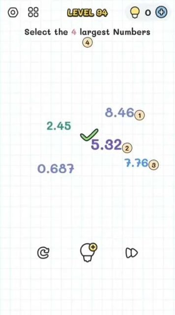 - Puzzle Me level 94 (Select the 4 largest Numbers)