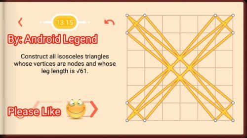 Pythagorea Level 13.15: Construct all isosceles triangles Whose Vertices are nodes and Whose leg length is root 61.