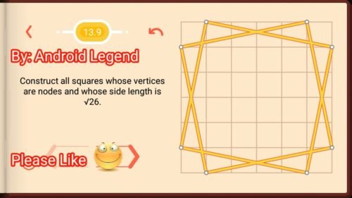 Pythagorea Level 13.9: Construct all Squares whose vertices are nodes and whose side length is root 26.