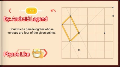 Pythagorea Parallelogram Level 7.9 New Version Game Answers, detailed solutions, Tips, and Walkthrough. Scroll below to find answer to this level.