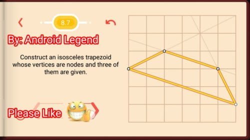 Pythagorea Level 8.7: Construct an isosceles trapezoid Whose Vertices are nodes and three of them are given.
