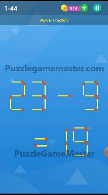 Smart Puzzle Collection Matches 1-44 Answer : 23-9=19 ⇒ 23-8=15