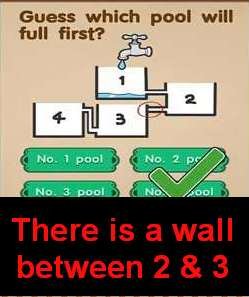 Hint: there is a wall between pool 2 and 3, so pool 2 will fill first.